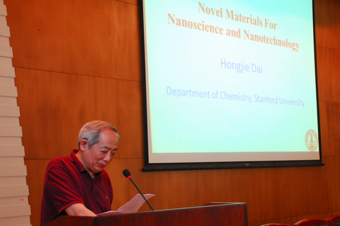 应化员工物传感与计量学国家重点实验室邀请,2012年7月3日上午,斯坦福(Stanford)大学化学系终生教授,J.G.Jackson & C.J.Wood荣誉教授,美国科学与艺术学院院士戴宏杰博士在学院D区报告厅做了名为《Nanomaterials for Nanoscience and Nanotechnology》的学术报告。此次讲学是国家重点实验室“化员工物前沿论坛”系列讲座的第七讲,俞汝勤院士主持。